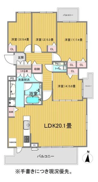 | 間取り | 4LDK | 間取り向き | (角部屋) |